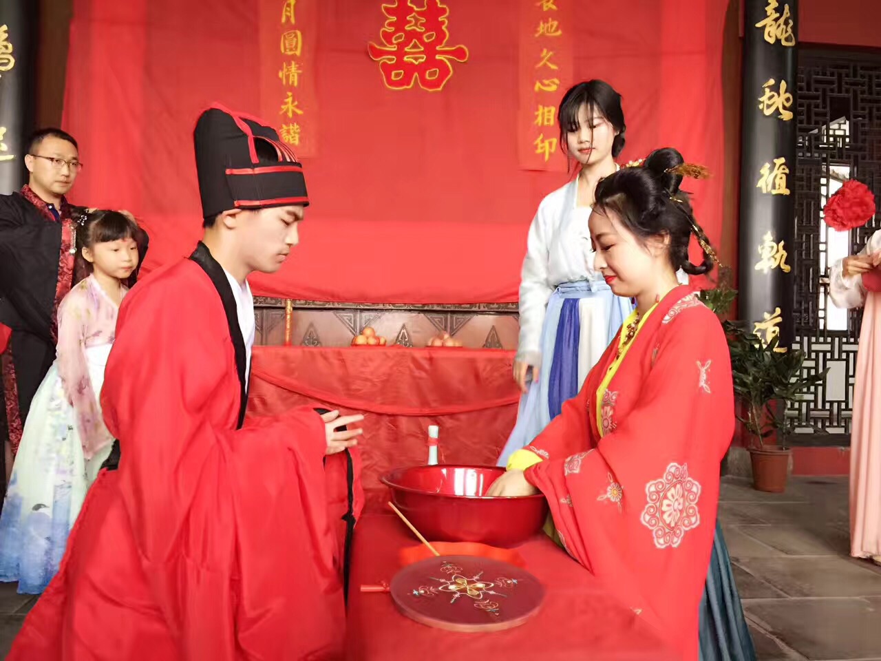 从迎新到“赞礼官”主持,从童男童女的拍手口诵诗词到新郎赠意,却扇之礼、沃盥之礼、同牢礼、合卺礼、结发之礼等环节,全部由该专业的师生仿照汉式婚礼的仪轨进行。师生们出色的“演出”,引来游人围观,武汉电视台也对活动进行了相关报道。