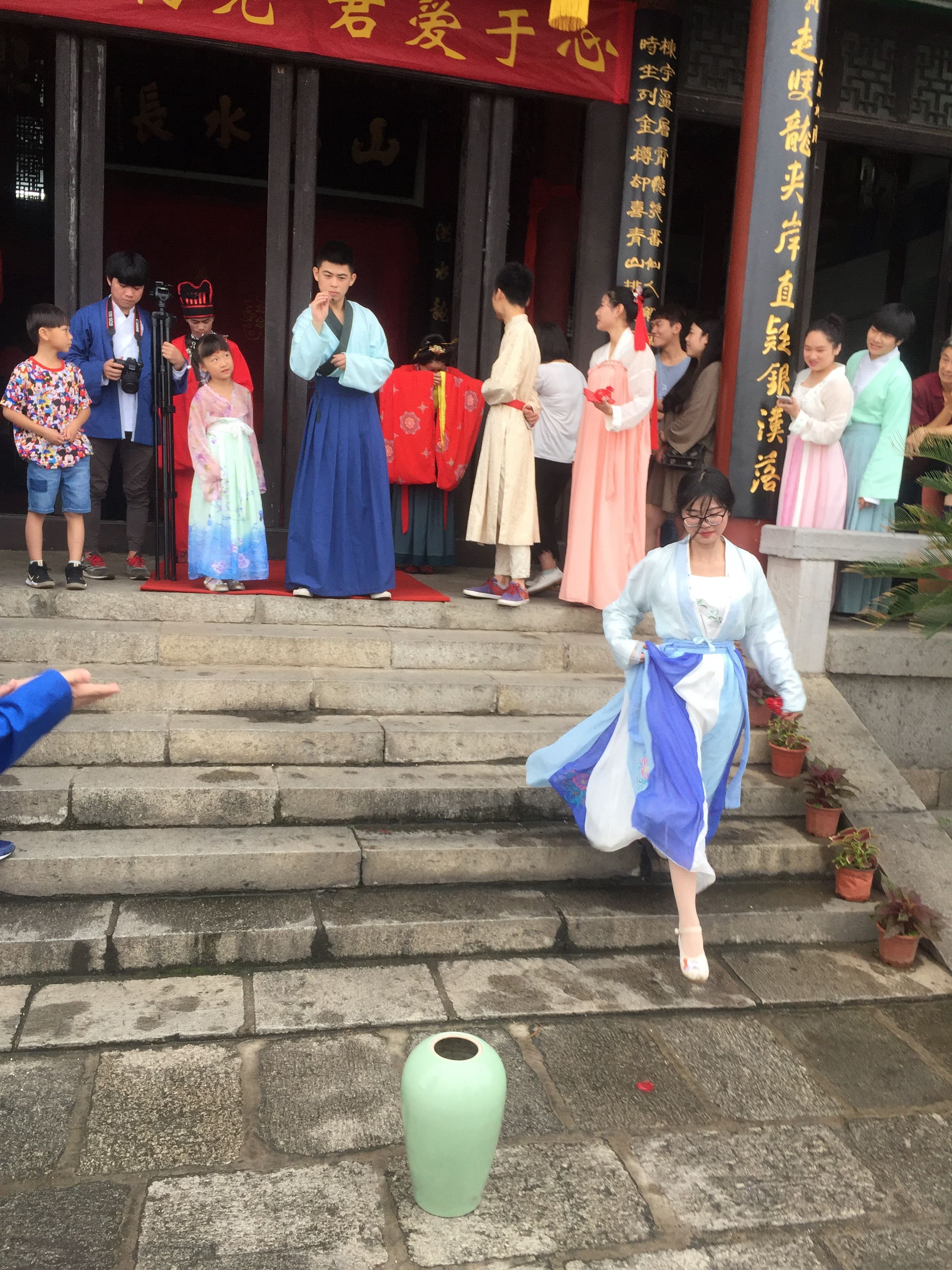 2017年6月10日是我国首个文化和自然遗产日,为?;ず痛形幕挪?,弘扬中华民族优秀传统文化,我校2015级传播与策划专业的师生一道,在汉阳晴川阁举行了一场特别的汉服婚礼仪式,以情景表演的形式,再现古风古韵,表达思古情怀。
