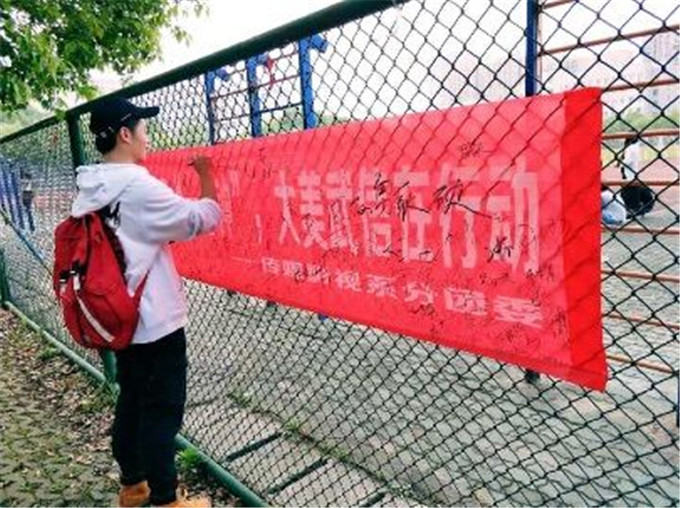在本次活动中,传媒影视系分团委通过官方微信发起了“身边的文明”微话题讨论,并于4月24日举办了“校园文明一分钟 大美武信在行动”签名活动。同学们纷纷在“文明树”上书写了我们在日常学习、生活中应该注意的文明细节,并在宣传横幅上签名。此外,传媒影视系志愿者从4月16日起,开展了“环保节能”志愿活动,每天中午和下午下课后,志愿者们会去教室查看电灯、电扇是否关闭,用实际行动倡导节能环保。