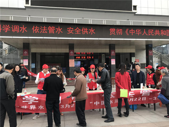 3月26日上午,志愿者们与江夏区水务湖泊局的工作人员,在江夏体育馆开展了以“科学调水 依法管水 安全供水”为主题的水法宣传活动,通过悬挂横幅、发放宣传手册和宣传资料、现场接受群众咨询等形式,向社会群众普及节约水资源、珍惜水资源的知识和理念。