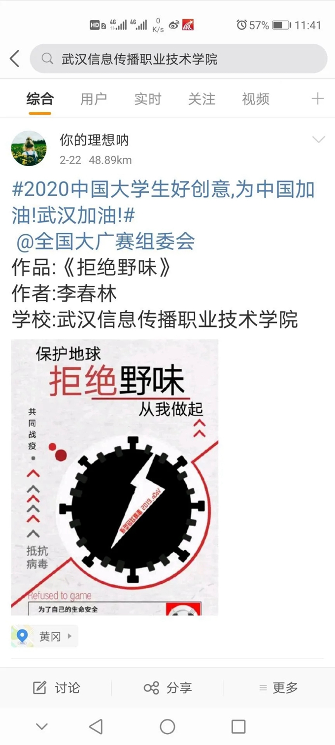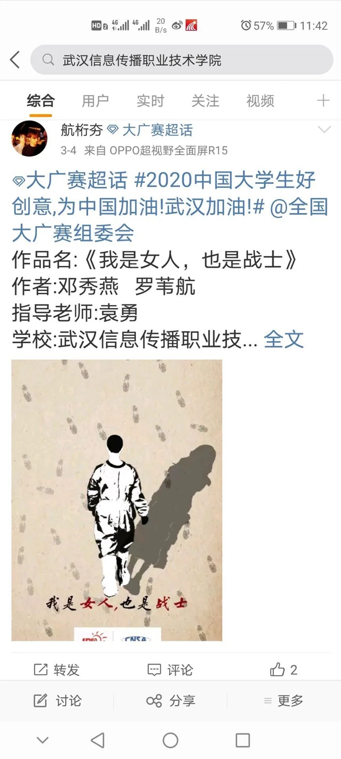 第二个面临的情况就是全国“大广赛”的开展,袁老师作为参赛指导教师每天忙到飞起。“大广赛”全名为全国大学生广告艺术大赛,是一项在全国内影响力广泛的高校文科赛事,也是我校组织学生参赛的传统项目。今年大赛的公益命题是:战“疫”。从2月4日大赛开始,袁老师带领学生们一边每天关注疫情的发展,一边引导学生寻找创作灵感,激发他们的创作热情。学生们热情高涨,纷纷用短视频、平面创意广告设计等形式,表达战“疫”必胜的信心和对一线逆行者的颂扬。如何让这一个个的作品更有感染力和冲击力,袁老师一点点地指导他们确定主题、修改文案、拍摄及寻找素材、制作特效,帮助打磨这些作品。到3月8日比赛截止,传媒影视学院共组织40余名学生创作了23部参赛作品。