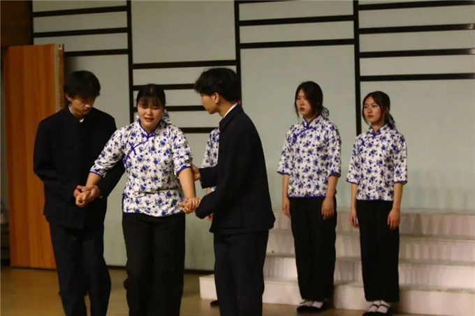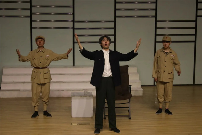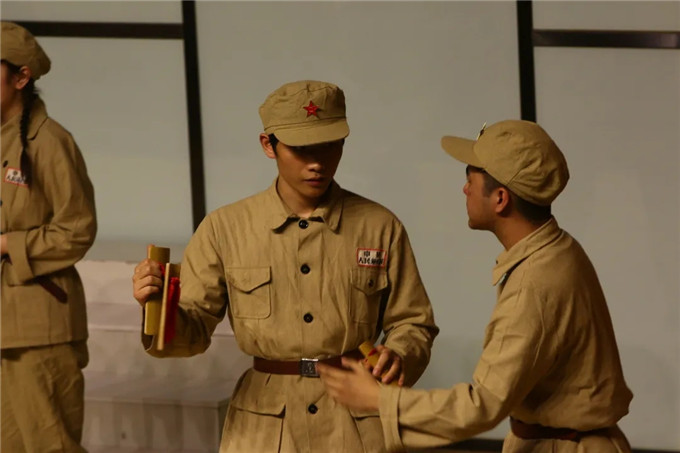 扮演小毛的崔登潮同学说:自己是00后的大学生,已经在积极向党组织靠拢,虽然这些故事离我们有点远,但是我们边排练边学习,理解人物原型,收获了一次思想的洗礼和成长。