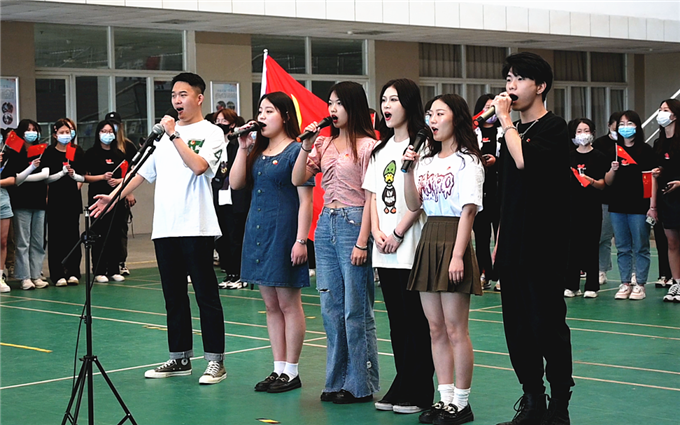 声情朗诵《相信未来》、激情合唱《光荣啊,中国共青团》、青春演绎rap活力舞……现场师生挥舞着小国旗,手拿“青春心向党、建功新时代”“青春献礼二十大、强国有我赴征程”等字样,随着激昂优美的旋律同步舞动。