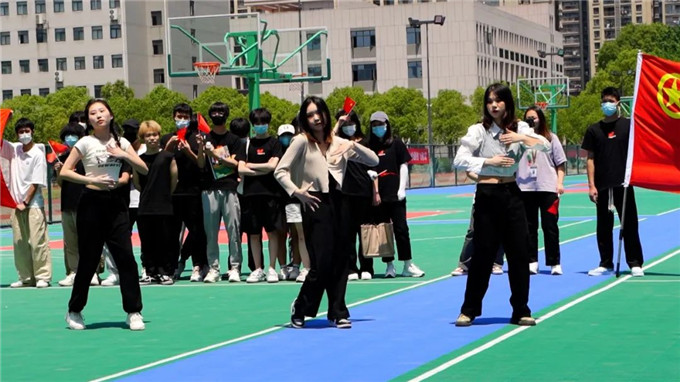 图书馆、篮球场、食堂,三场不同地点但同样精彩的快闪,高潮迭起震撼人心,青年学子饱满的热情和沉浸式演绎,将炙热的青春表达得淋漓尽致。