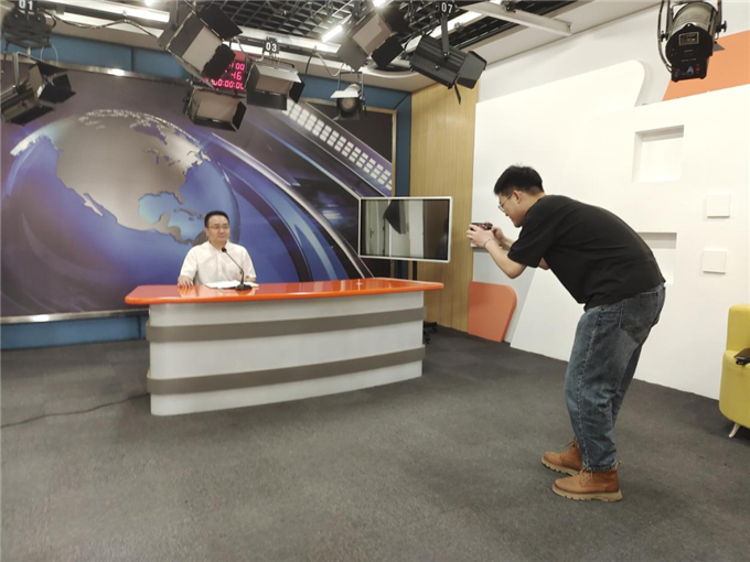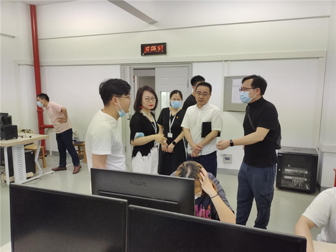 长江网来宾一行还饶有兴致地参观了演播厅、非线编机房、摄影棚等实训室。