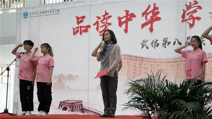 “您诞生在浙江嘉兴南湖的游船,似一轮霞光万道的朝阳升起;您的光辉照耀下,历经沧桑的祖国,似沉睡的雄狮猛然醒来。”开幕式上,校长许婷和同学们共同朗诵《党啊,亲爱的妈妈》。