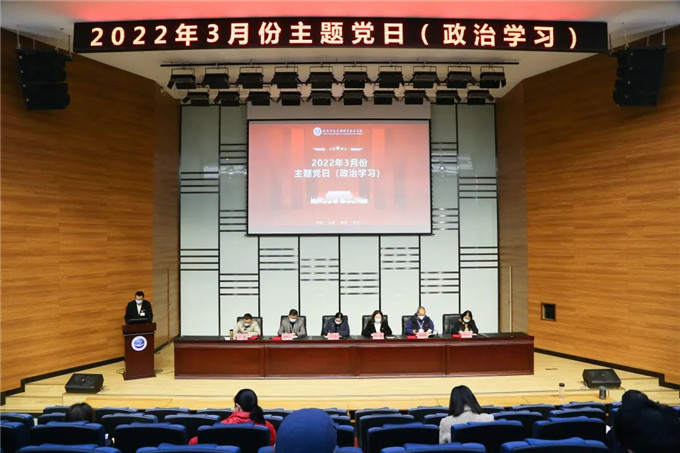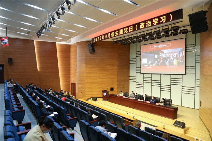 3月23日下午,我校党委在学术报告厅举行2022年3月份主题党日(政治学习)。全体校领导、全校中层干部、各基层党组织书记及相关人员参加。