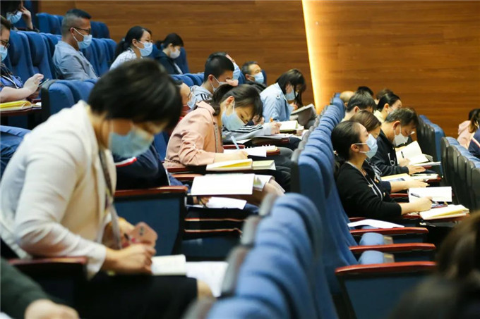她首先带领大家温习了中共中央办公厅 国务院办公厅印发的《关于推动现代职业教育高质量发展的意见》,分析了省人民政府《实施意见》的出台背景,逐条学习了文件内容,深入解读和剖析了其中重点项目,并结合学校实际提出了工作思考。