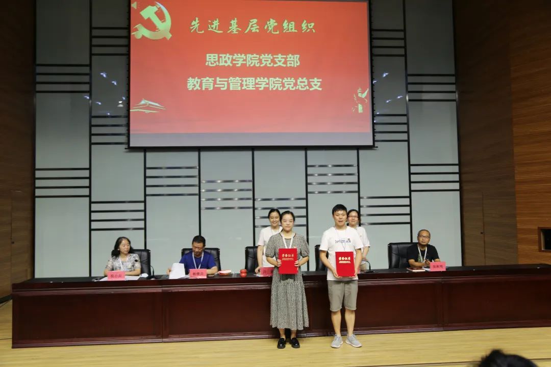 本次主题党日首先传达学习了湖北省第二十次党代会精神,接着表彰了2021年度优秀共产党员、优秀党务工作者、先进基层党组织。学校党委委员、副校长杨继兵宣读表彰决定。校领导班子成员为受表彰的先进个人和集体颁奖。