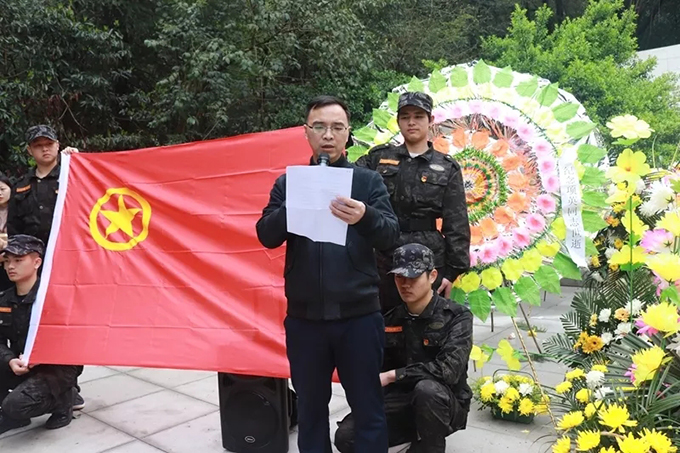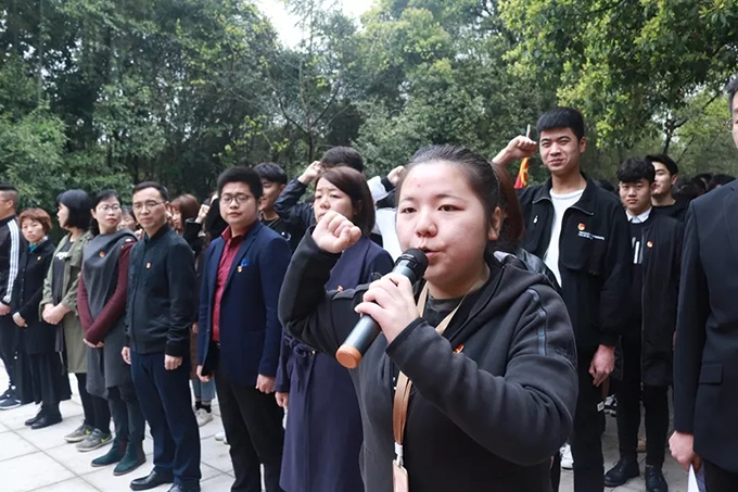 在项英烈士墓前,团员青年们齐声高唱国歌。副校长尤敏带领智能制造工程系4名红星队成员向烈士进献花篮,全体三鞠躬后,校团委书记张慧为全体青年团员们上了一堂“纪念五四运动100周年”的微团课。她向团员青年们介绍了项英的英雄事迹和五四运动的起源及经过,诠释了五四运动的内涵与精神,激励团员青年们要继承、学习和思考五四运动的精神财富,要带着希望去战斗、开辟与探索,脚踏实地,继往开来。