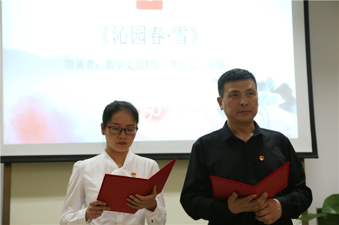 本次活动在教学党支部委员会的积极组织下,全体党员积极参与,支部组成部门之间相互配合,从选题到展示,大家精挑细琢,反复排练,从一字一句中读中国、颂党恩、讴歌新时代、激发正能量。