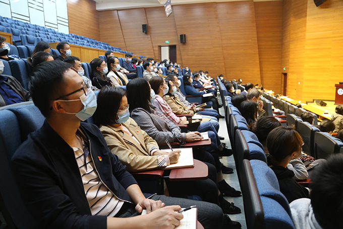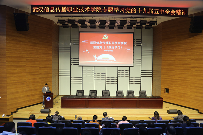 11月18日下午,我校党委举办2020年11月份主题党日,专题学习党的十九届五中全会精神。在校校领导许婷、孙翔、杨继兵、张秋鸣、尤敏和全校无教学任务的教职工参加学习。