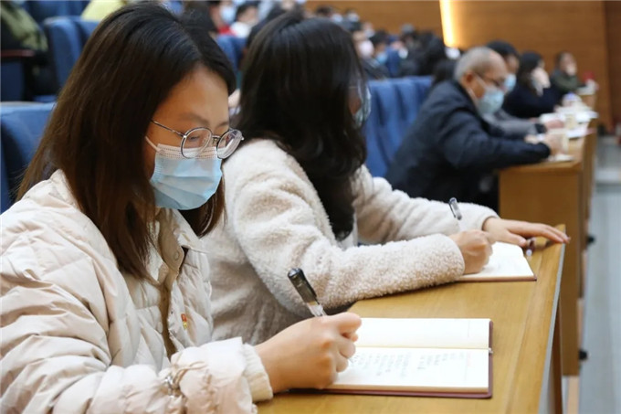 许婷同志从为什么学、学什么、达成怎样的学习目标三个方面,向全校各级党组织和广大党员提出三点学习要求。一是要努力提高政治站位,深刻领会开展党史学习教育的重大意义。在庆祝我们党百年华诞的重大时刻,在“两个一百年”奋斗目标历史交汇的关键节点,在全党集中开展党史学习教育,是牢记初心使命、推进中华民族伟大复兴历史伟业的必然要求,是坚定信仰信念、在新时代坚持和发展中国特色社会主义的必然要求,是推进党的自我革命、永葆党的生机活力的必然要求。二是要全面准确把握党史学习教育的重点内容。在全面学习掌握中国共产党的光辉历程、伟大贡献、伟大精神、重大理论成果和宝贵经验的基础上,不断学懂弄通做实习近平新时代中国特色社会主义思想。要将党史学习与学习贯彻习近平总书记关于教育的重要讲话精神和指示批示精神结合起来,与国家关于职业教育改革的精神、政策、措施相结合起来,厚植办好人民满意教育的情怀,肩负立德树人的使命,把握新时代职业教育发展的规律,提高教书育人的本领,担起学校改革发展的重任。三是要赓续共产党人的精神血脉,彰显武信特色,以扎实行动推进学校各项工作开新局。全校党员要进一步坚守共产党人精神追求,坚定理想信念,坚定共产主义和社会主义信仰,不断提高政治站位,进一步激发为创建“环境优美、水平一流”特色优质高职院校的斗志,激发做好学校各项工作的热情,努力成为学校改革发展的中坚力量和排头兵。全校各级党组织要立足基层党组织和党员实际,不断丰富“三会一课”和主题党日内容,不断丰富党组织生活,不断传承国有文化企业办学的红色基因;要立足青年学生实际,做实“三进”工作,抓好革命传统教育,开展有声有色的校园文化活动,推动党史学习教育贴近学生、深入人心,不断提高教育学生、引导学生、服务学生的能力水平。