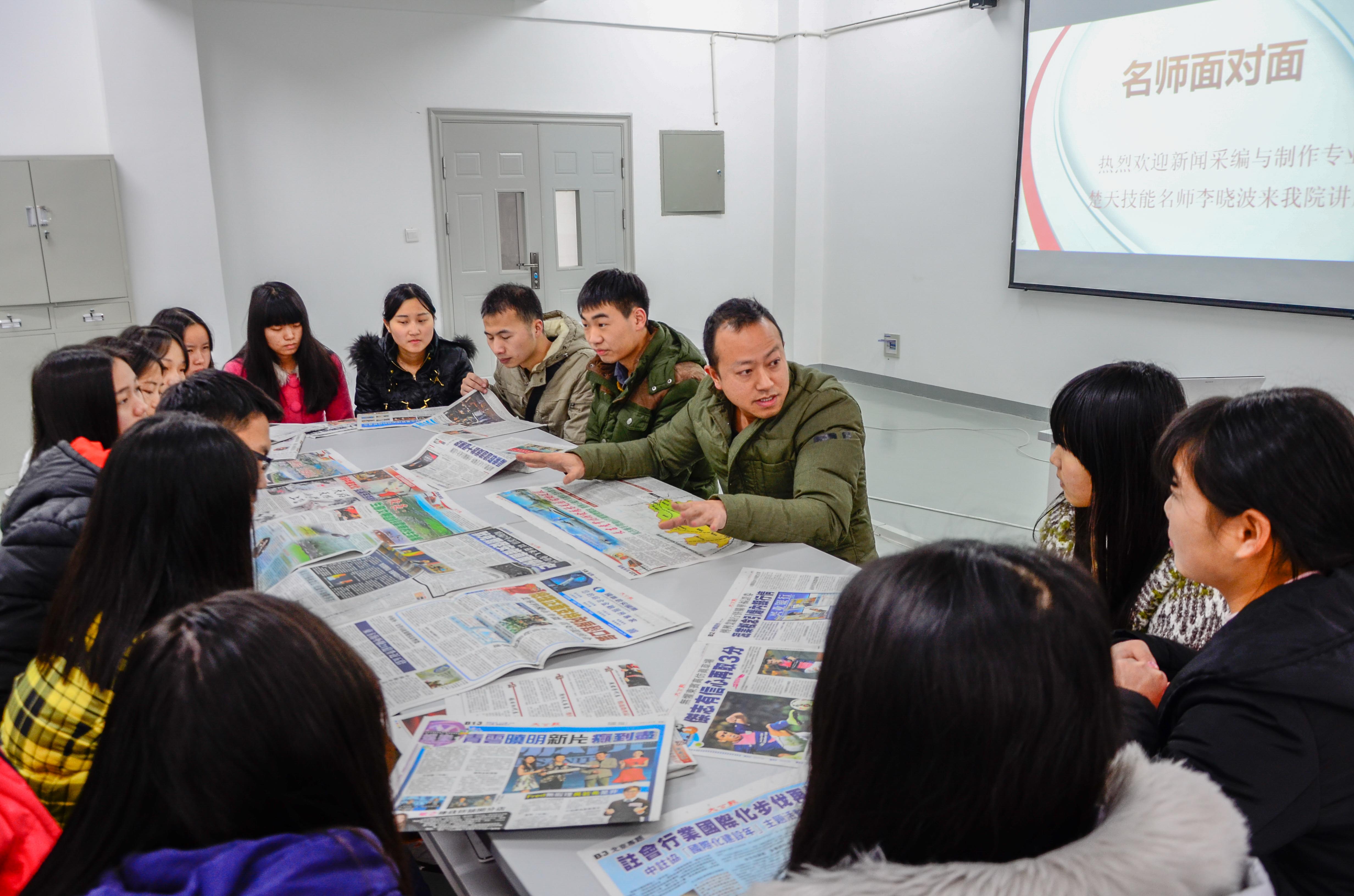 12月22日下午,我校楚天技能名师李晓波和新闻采编与制作专业的同学们在商务策划室开展了一场别开生面的“名师面对面”交流活动。