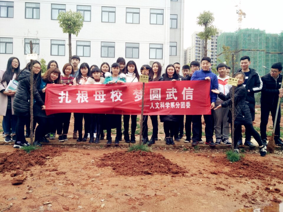 为迎接植树节的到来,感谢学校的培育之恩,人文科学系2014级学生代表在分团委老师和学生会干部的带领下,2016年3月9日中午,在实训楼前植下象征生生不息、欣欣向荣的柏树。