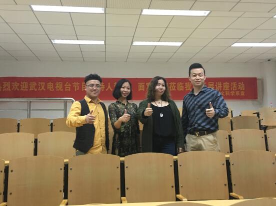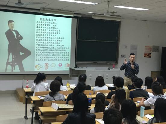 4月26日下午,人文科学系婚庆服务与管理专业在图书馆阶七教室举办了一场主题为“婚礼人的职业发展与规划”的讲座。武汉电视台《结婚壹加壹》栏目主持人、第四届全国婚礼主持人大赛金奖获得者贺嘉老师,著名汉派婚礼主持人、湖北交通电台“好吃佬”栏目主持人“面窝”老师,作为讲座嘉宾,与2015级婚庆专业的学生们进行了现场交流。