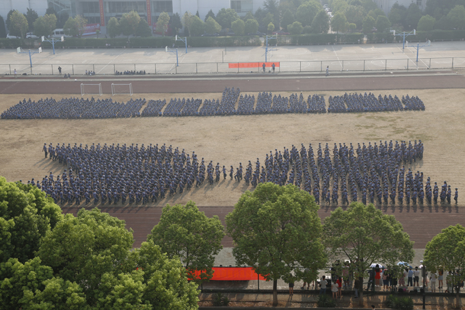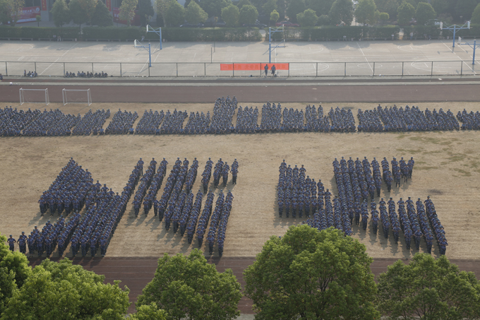 上午8点,在庄严的奏国歌仪式后,2016级新生军训汇报表演正式开始。首先进行了的是方队分列式表演。伴着雄壮的《分列式进行曲》,23个受训方队迈着整齐的步伐,依次通过主席台,接受领导们的检阅。各方队学生精神饱满、英姿飒爽、口号嘹亮、步伐整齐,充分展现了武信学子昂扬的斗志和蓬勃向上的精神风貌。接下来,由1000人组成的花样方队的表演,将军训汇报表演推向了高潮。花样方队随着《强军战歌》、《中国人》、《步步高》等歌曲的变奏下,变换了“倒计时”、“中国”、“信息传播”等字样的队形,其精彩的表演赢得了在场领导和观众的阵阵掌声和一致好评,也展现了新生之间团结协作的力量。