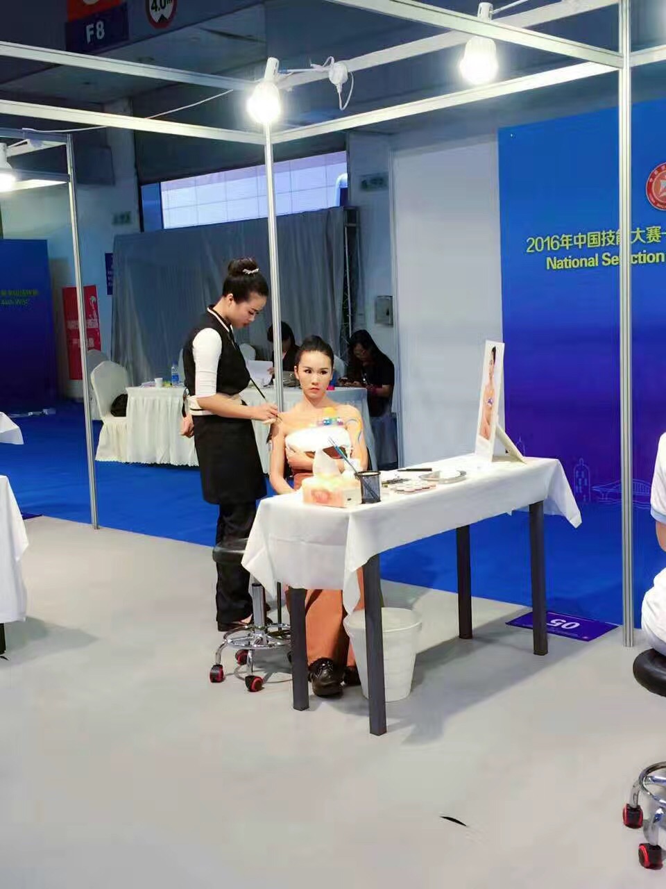 本次全国选拔赛中的美容项目包含面部护理、美体、化妆、美甲、人体彩绘等多个小项,前八强将进入国家队。比赛中,通过与来自10个省队的20名选手之间的激烈角逐,我校2014级人物形象设计专业的宋幸运和潘琳娜分别取得了第四名和第七名的好成绩,顺利入选国家队!在接下来的一年中,她们将接受国家队的严苛训练,角逐明年在阿联酋阿布扎比举行的第44届世界技能大赛最终两个宝贵的参赛名额。