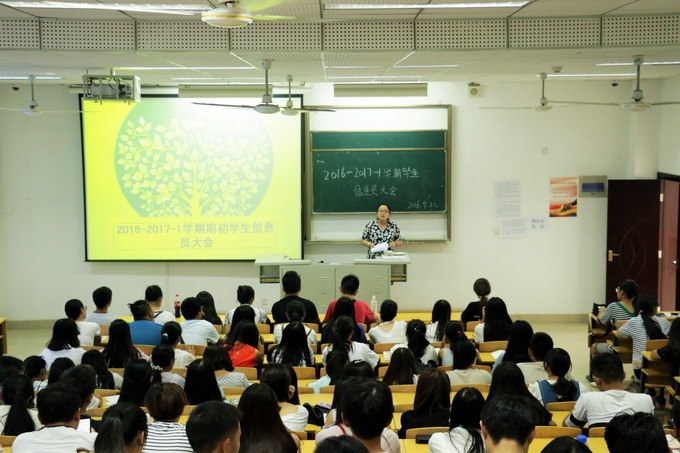 为引导新一届学生信息员规范地做好教学信息反馈工作,2016年9月22日中午,教学督导办公室组织全校学生信息员进行了专题培训。教学督导办公室陈文娟老师从学生信息员的基本工作要求、工作职责、工作内容、工作程序、考核评优标准等五个方面,对全体学生信息员进行了系统的培训。陈文娟老师重点强调了担任学生信息员的重要意义。她要求全体学生信息员要增强主人翁意识,以自己和班级同学为主体,贴近同学,亲近教师。既要了解任课教师对班级同学学习情况的评价,又要了解全班同学对任课教师教学的意见和建议;既要定期反馈班级同学的学习情况,又要和班级干部加强协作管理。以客观、公正的态度,及时反馈有价值的信息,促进学风、教风、校风建设。