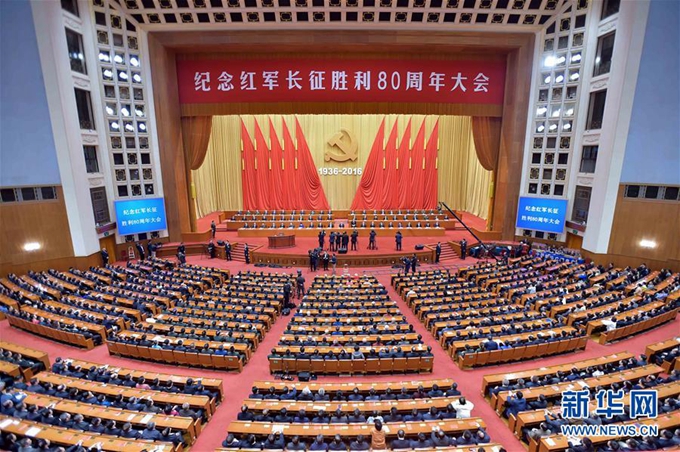 今天,我们在这里隆重集会,纪念中国工农红军长征胜利80周年。红军长征的那个年代,中国处在半殖民地半封建社会的黑暗境地,社会危机四伏,日寇野蛮侵略,国民党反动派置民族危亡于不顾,向革命根据地连续发动大规模“围剿”,中国共产党和红军到了危急关头,中国革命到了危急关头,中华民族到了危急关头。