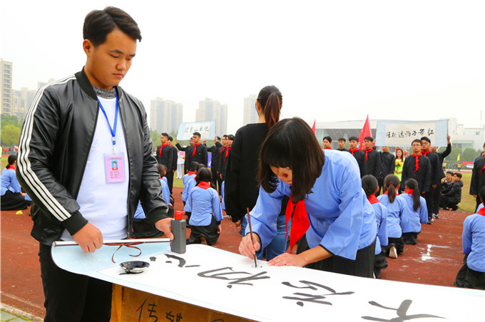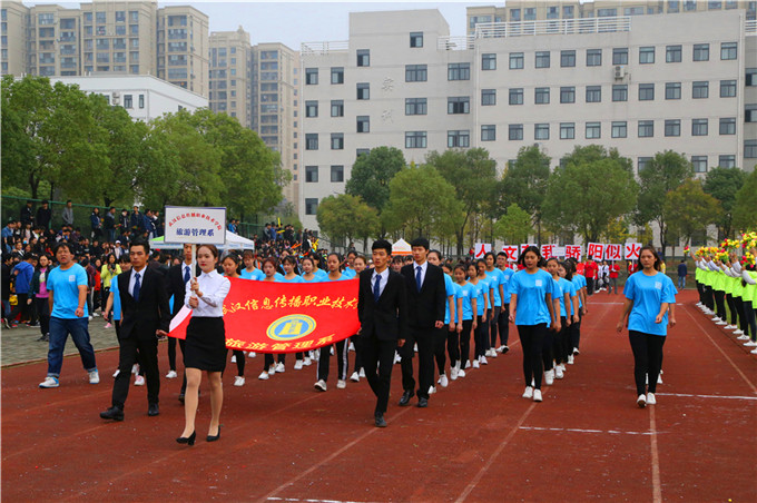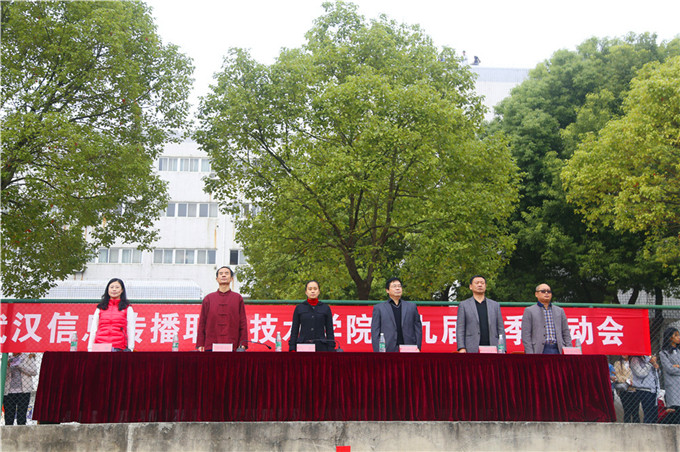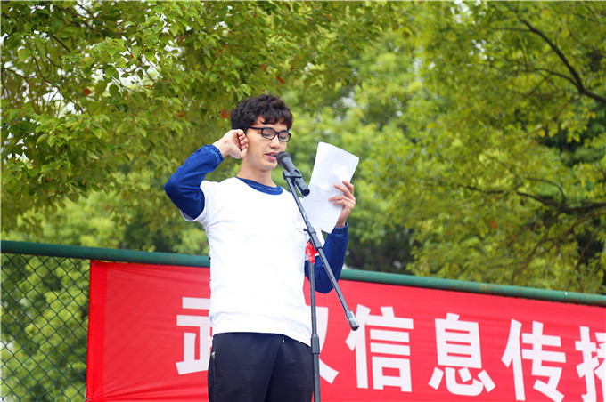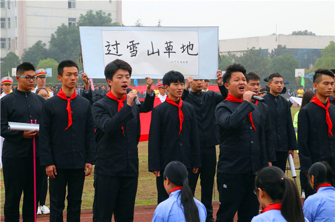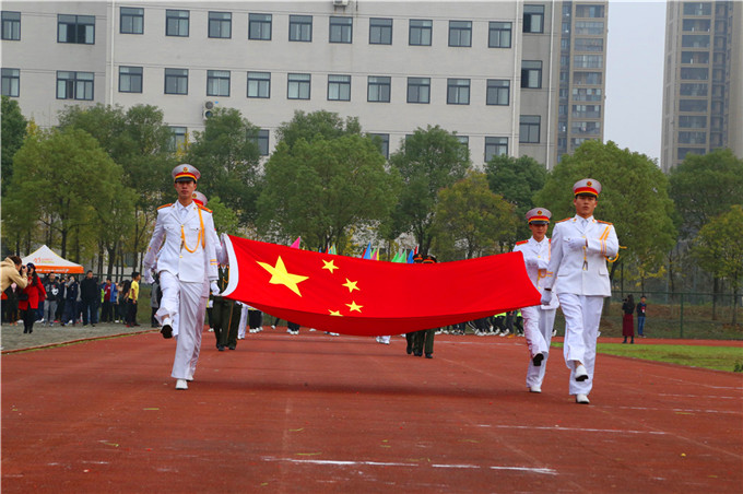 11月3日上午8点,伴随着激昂的运动员进行曲,由12名退役复学的学生护旗手组成的国旗队、校旗队、会旗队首先入场,拉开了运动会开幕式的序幕。随后,各系方队依次入场。有的方队紧扣运动主题、彰显运动激情,有的方队表现运动带来的快乐,有的方队展现传承工匠精神,有的方队追忆红军长征。特别是印刷与包装工程系以飘舞的彩绸寓意印刷五彩世界的梦想,以中国红的扇子舞动青春,昭示学子爱党爱国之情,“工匠”队形变换,更显示武信学子弘扬工匠精神的朝气。传媒影视系则以戏剧影视表演专业的早课训练为切入,加上电影情景的烘托、长征诗词的朗诵和长征组歌的演唱、现场“不忘初心”的书法,集中展现了武信学子学习长征精神,致敬革命先辈,不忘初心、继续前行的青春的力量。