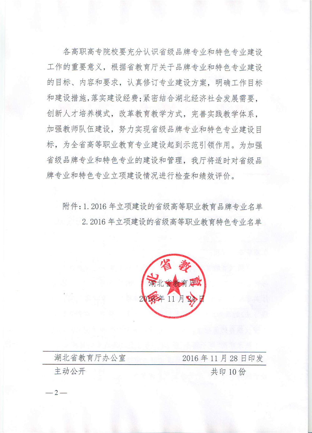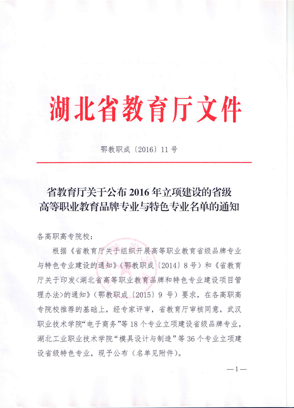 近日,湖北省教育厅公布了2016年立项建设的省级高等职业教育品牌专业与特色专业名单,我校艺术设计系动漫制作技术专业获批立项建设省级特色专业。