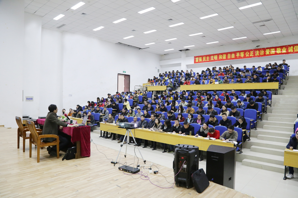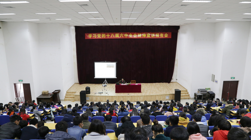 为了全面深入学习贯彻党的十八届六中全会精神,根据湖北省委高校工委的统一安排,12月7日下午,湖北省委高校工委宣讲团成员、华中科技大学马克思主义学院吕洪良副教授来我校作宣讲报告。全体校领导、全体中层干部、各党支部委员、教职工党员代表、学生党员代表、入党积极分子和学生干部代表等近300人一起聆听了报告。报告会由我校校长许婷主持。