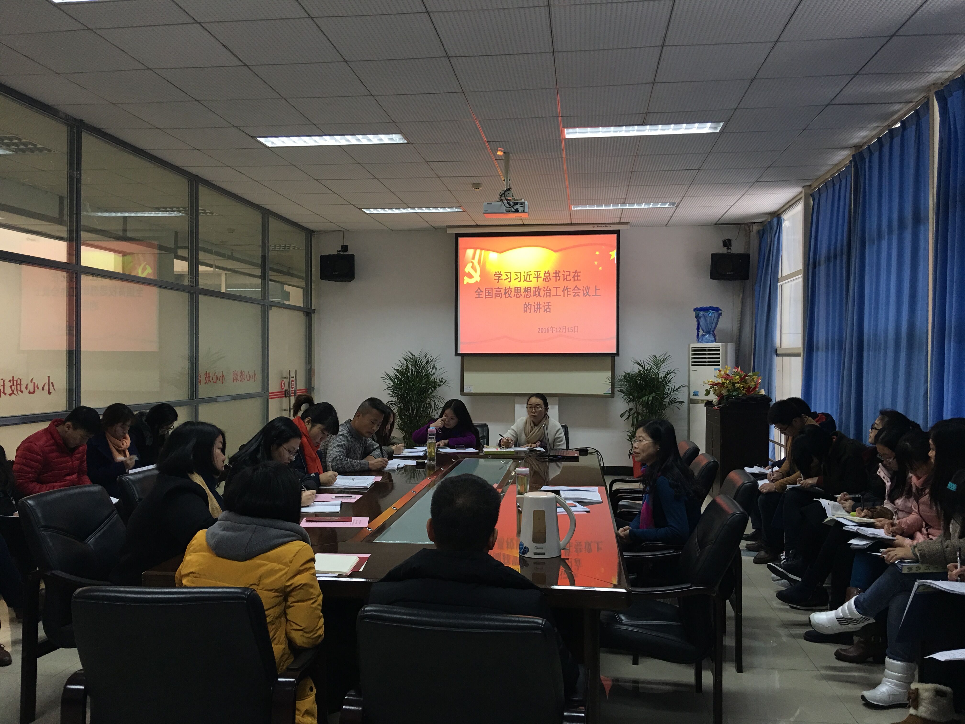 12月15日上午,学工处组织辅导员等学工系统全体人员召开专题学习会,集中学习习近平总书记在全国高校思想政治工作会议上的重要讲话。我校党委委员、副校长万怀钰出席会议,会议由学工处处长张慧主持。