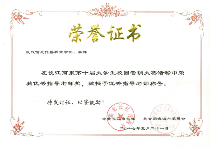 在本届比赛中,学工处姜婵老师还被评为“优秀指导老师”,“天马行空”团队负责人、旅游管理系会展策划与管理1501班孔姗姗同学被评为“优秀组织者”。(学工处)
