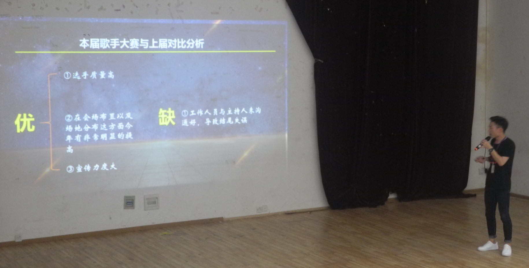 述职会上,校学生会、校社团联合会、校青年志愿者协会等9个校级学生组织的负责人,分别以PPT形式对过去一学年的工作进行了全面的总结,展现了我校青年积极分子自我教育、自我管理、自我服务、自我提升等方面取得的成绩。同学们还对学生组织未来的发展提出了规划。结合一年来的工作实际情况和述职报告情况,校团委决定授予校学生会和校学生管理委员会学年度工作“优秀组织奖”。