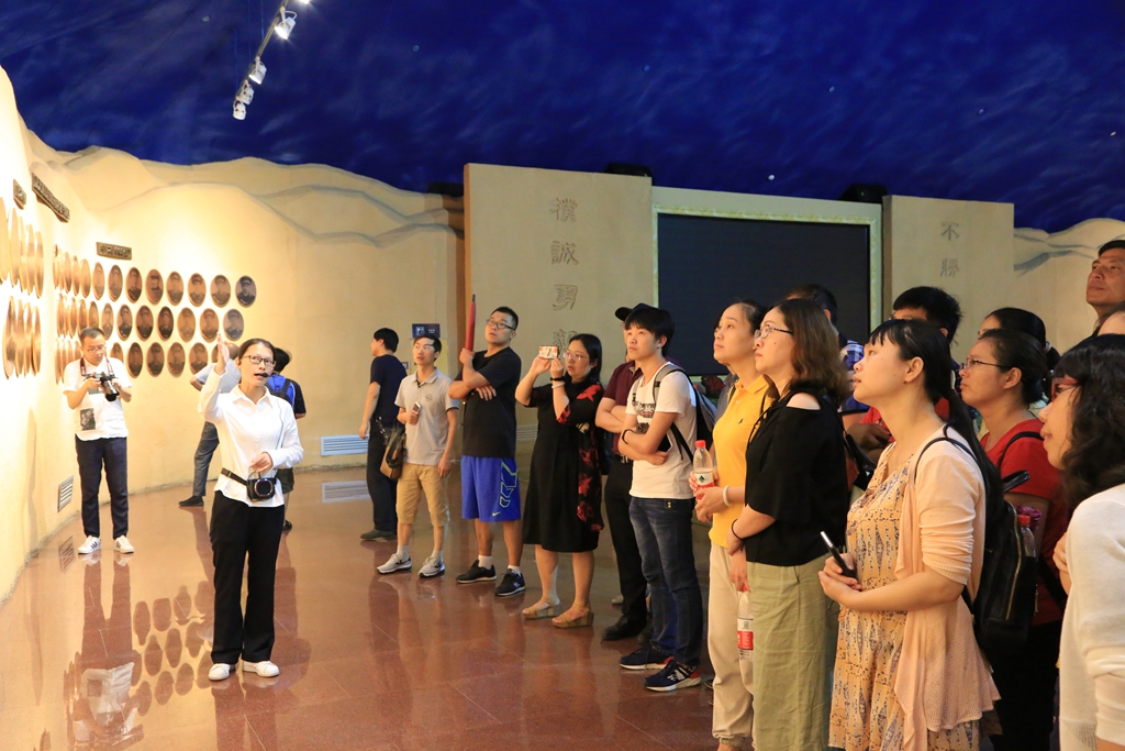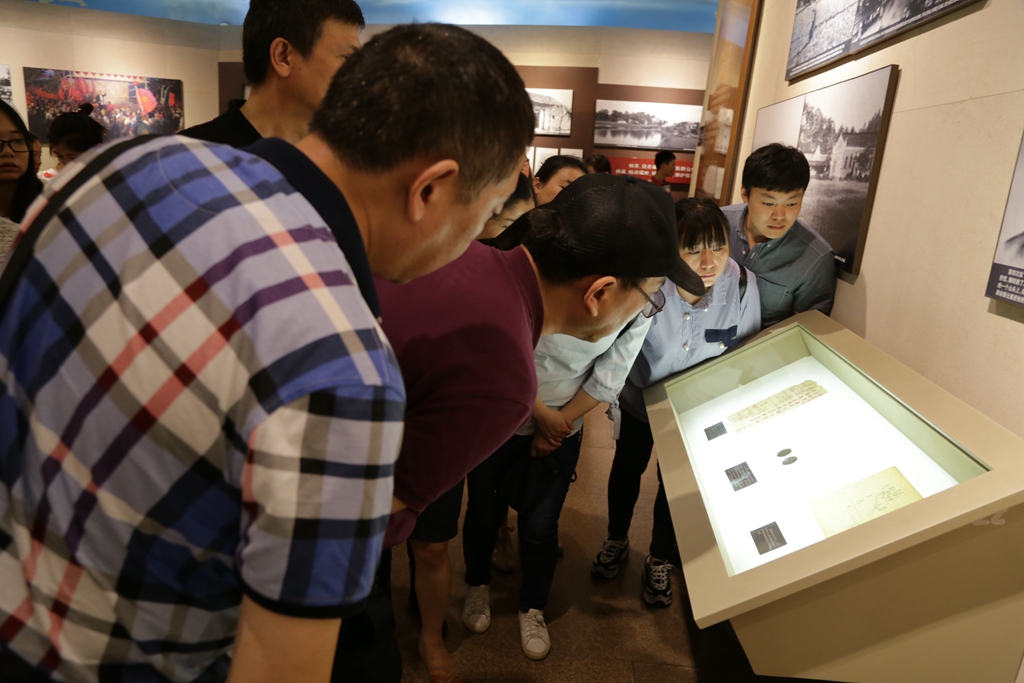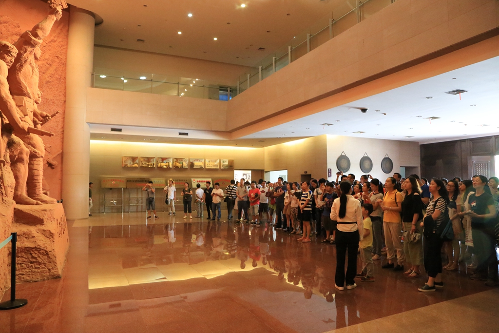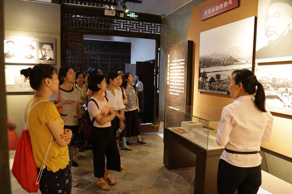 在纪念馆一楼大厅聆听黄麻起义的历史介绍
