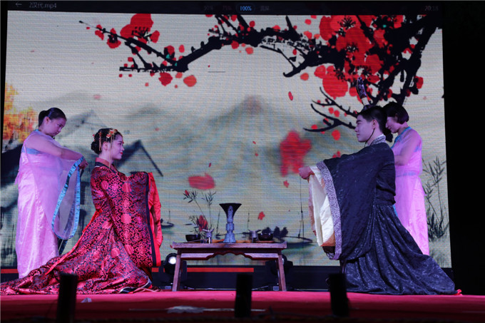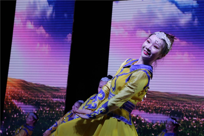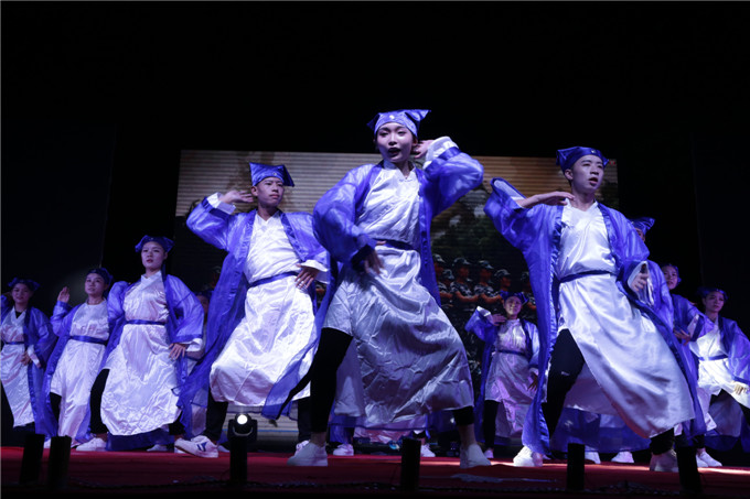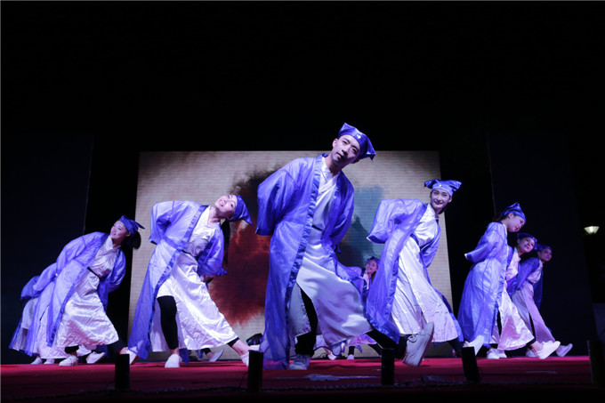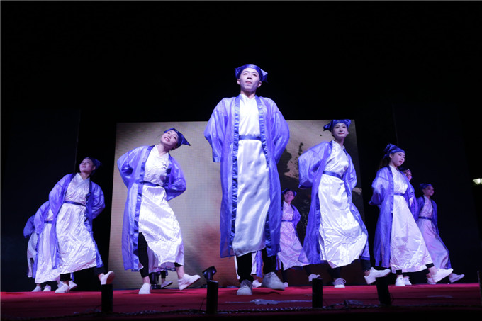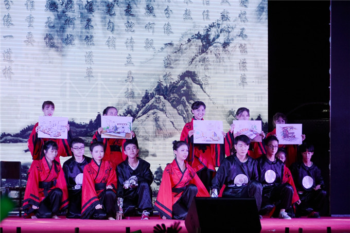 艺术设计系选送的舞蹈《秦时明月·桥》,以木椅子做桥,除了既古典又时尚的舞姿,还展示了专业的手绘画;每人一把算盘,算盘随着舞姿不断挥动,经济管理系选送的舞蹈《算盘情忆》,再现了古时学习珠算的情景;“中国就是莫高窟里飞天反弹的琵琶声,中国就是丝绸之路上悠远的驼铃声响……”由语委办选送的全省普通话比赛项目《我的中国》朗诵,表达了青年学子的拳拳爱国之心;大学生艺术团表演的现代舞《see you again》,青春气息十足;军训教官表演的《擒敌拳和倒功》,以实力征服了现场观众,让人热血喷张,一度将晚会的气氛推向高潮,大学生艺术团表演的民族舞《塔林呼恒》,展示了蒙古族草原人的热情奔放;传媒影视系带来的小品《手机综合征》,以诙谐的“包袱”,呼吁青年学子远离“手机控”,加强人与人之间的交流;人文科学系表演的婚礼秀《华服告天》,情景再现了古今中外的婚礼婚俗。晚会在两位教师演唱的《不忘初心》歌声中落下帷幕。