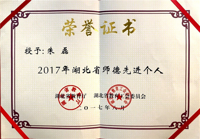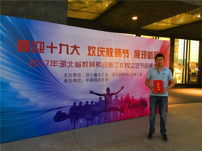 9月7日,湖北省教育厅、湖北省教育工会在武汉琴台大剧院隆重举行2017湖北省教育系统优秀职工颁奖晚会,我校艺术设计系副主任朱磊老师被授予2017年湖北省“师德先进个人”荣誉称号。