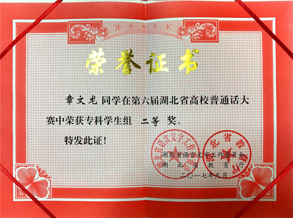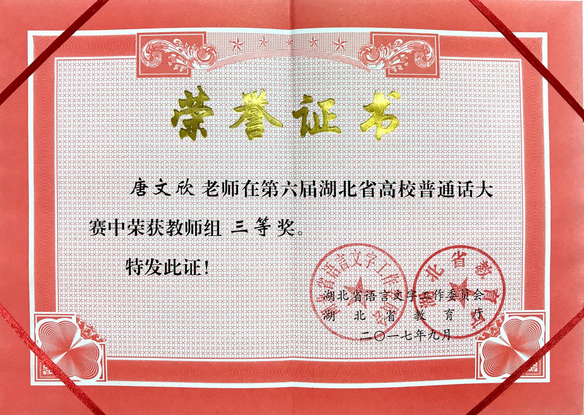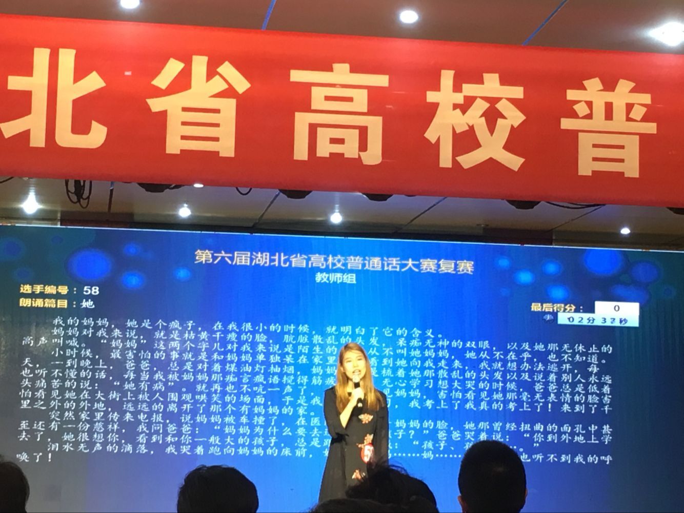 9月13日至15日,由湖北省语言文字工作委员会、湖北省教育厅主办,三峡大学承办的第六届湖北省高校普通话大赛在三峡大学举行。我校传媒影视系唐文欣老师荣获教师组三等奖,经济管理系章文龙同学荣获专科学生组二等奖。