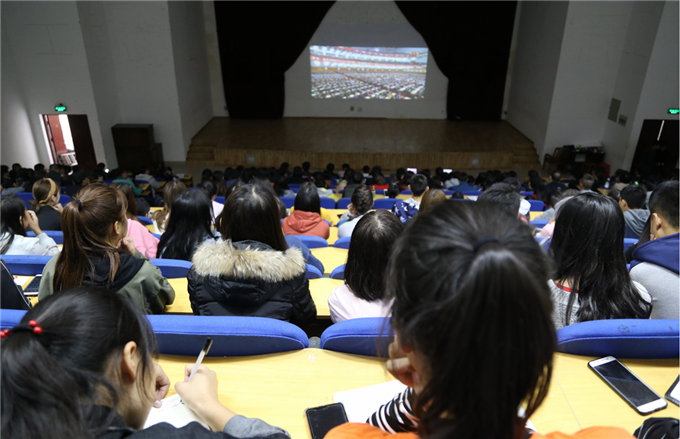 10月18日下午,校党委专门在学术报告厅组织全体教职工和部分学生代表集中收看了党的十九大开幕盛况,认真聆听学习习近平同志代表十八届中央委员会向大会作的报告;20日上午,校党委书记钱钧同志带领党委理论中心组专题学习习近平总书记的报告;24日上午,校党委组织教职工代表收看党的十九大闭幕会;25日中午,学校开放阶梯教室、食堂供师生收看新一届中央政治局常委同中外记者见面会。党的十九大召开期间,各党支部组织党员,校团委组织团员青年、学生组织,辅导员组织班团组织纷纷学习习近平总书记的报告。