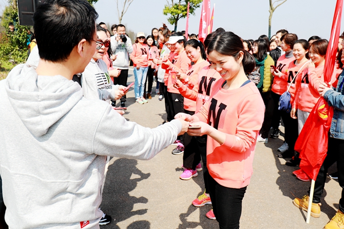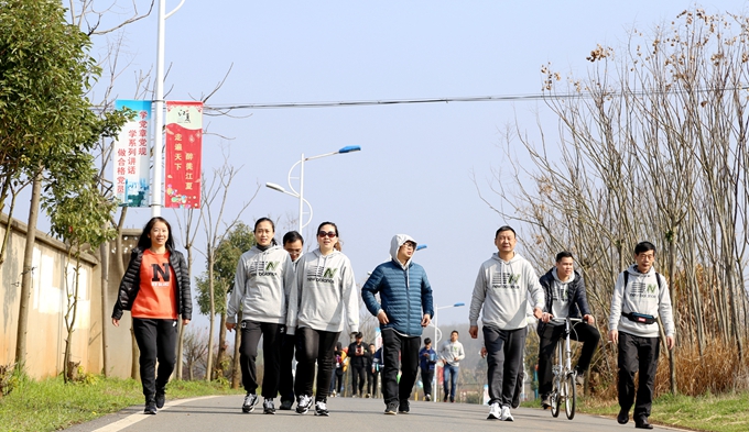 阳春三月,绽放美丽。3月9日上午,在江夏区梁子湖附近五里界绿道,我校近200名教职工欢声笑语,学校工会组织的“欢庆三八节、阳光健步走”活动受到教职工们的热烈追捧。