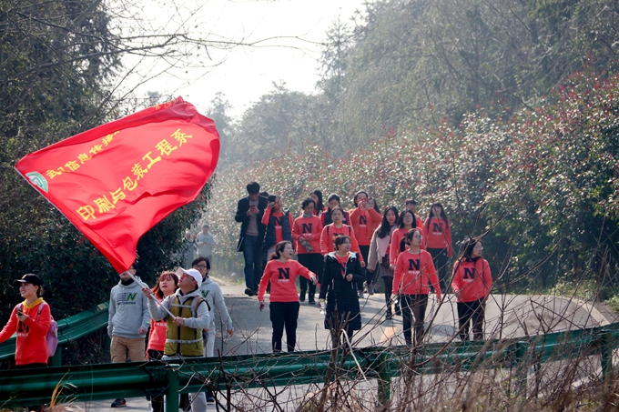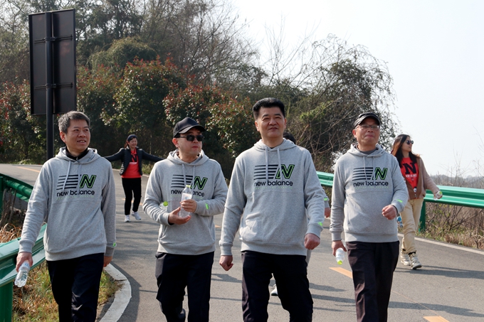 随着党委委员、副校长杨继兵的一声令下,教职工们浩浩荡荡地出发了。暂时放下平日繁琐的工作,教职工们沐浴着和煦春光、信步山野之中、看山花烂漫,飘扬的鲜艳校旗、快乐绽放的笑容绽,加上亮橙色的服装和良好的精神风貌,在初春的绿道上构筑了一道靓丽的武信风景线。
