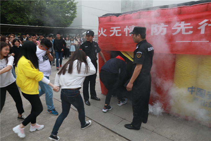 为落实省教育厅关于安全生产宣传教育进校园的通知要求,切实加强学校消防安全工作,提高广大师生安全防范意识、安全疏散与自救能力,打造平安校园,2018年4月26日下午,学校保卫处邀请湖北省消防协会义务宣讲员谢小秋、王俊,为全体师生开展消防安全知识讲座,并指导师生举行消防应急演练。
