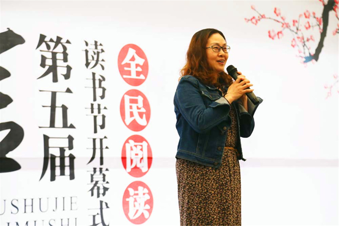 在“好书伴我成长”环节中,三位师生代表分别分享了他们阅读的故事。孙翔副校长分享了她年少时喜欢读书的情景,热爱读书影响她大学专业的选择,以及工作后阅读陪伴她思悟人生的故事。她还推荐了她最近又在再次阅读的《老人与?!泛汀栋倌旯露馈?,并以“读书可以静心”、“读书可以思辨”,鼓励我校师生多读书,读好书。艺术设计系支部书记朱磊老师分享了他阅读《习近平谈治国理政》(第二卷)的心得,他还铿锵有力地朗读了其中关于“信仰”选段,呼吁同学们树立远大理想,为实现中国梦贡献青春力量。经济管理系2016级市场营销专业章文龙同学用极富感染力的声音朗读了朱自清先生的《背影》,让大家感受到成长背后坚强的父爱力量。