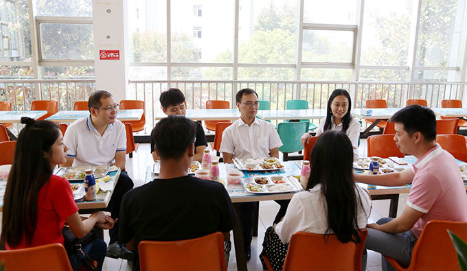 “你们安排得非常周到,太用心了,孩子交给你们,我们家长非常放心。”“刚刚系主任带我们去看了实训室,教学设施非常高大上,孩子学习有保障,我们也就安心。”9月14日中午,从食堂二楼传来阵阵欢声笑语。党委副书记、校长许婷,党委委员、副校长尤敏和数十位新生及家长代表共进午餐,共话家校共建育人、共话学校和学子的美好未来。