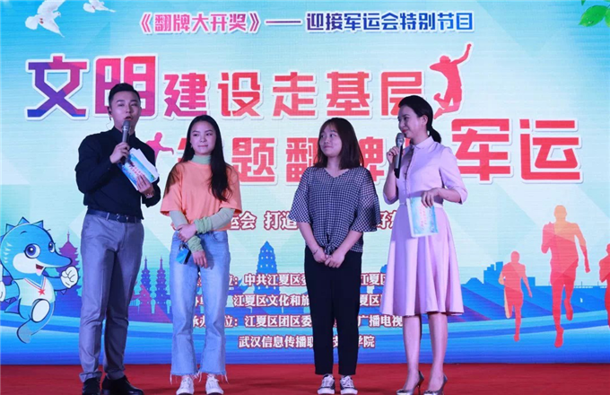 5月21日晚上,由中共江夏区委宣传部、江夏区文明办主办,区广播电视台和校团委联合承办的“文明建设走基层 答题翻牌赢军运”专题宣传活动在我校举行。本次活动以“迎军运、讲文明、树新风”为主题,大力营造“迎接军运会、打造新环境、当好东道主”浓郁氛围,扎实推进文明行为养成、志愿服务活动等群众性精神文明创建活动,以崭新面貌迎接军运会。