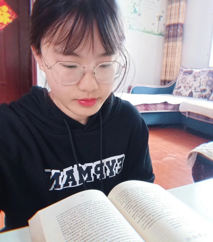 因为疫情所限,自己虽然待在家里没法去学校。但坚持阅读书本一样在学习和进步。她坚信读书带来的气质和修养是其他东西所不可比拟的。