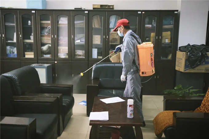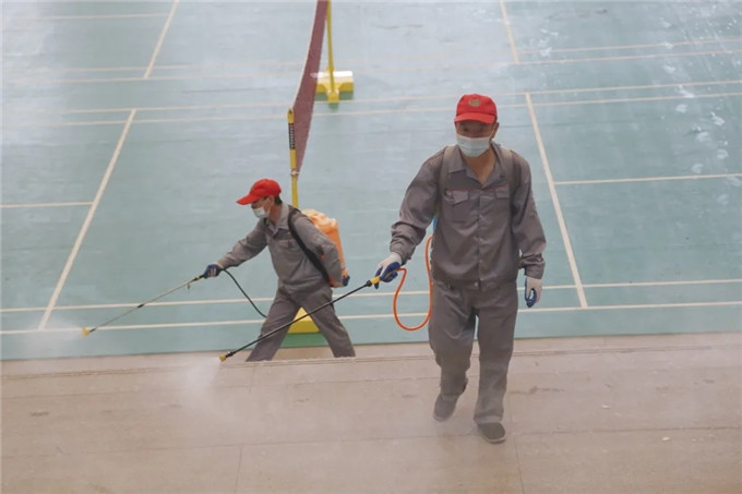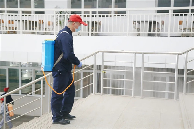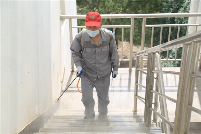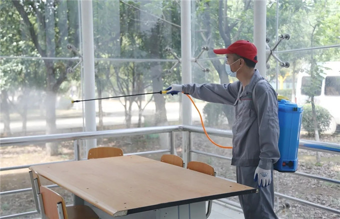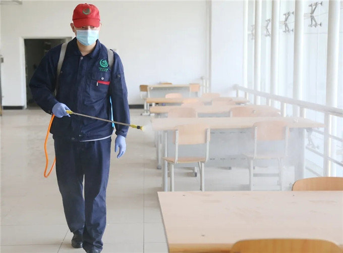 5月26日,学校统一部署开展全面消杀,为重启校园做好准备工作。