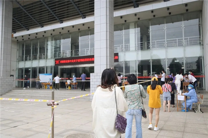 为避免人员聚集,综合考虑人流、通风、消杀等因素,检测安排在图书馆门前。