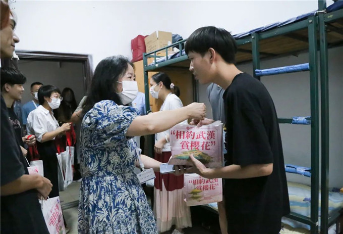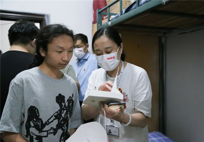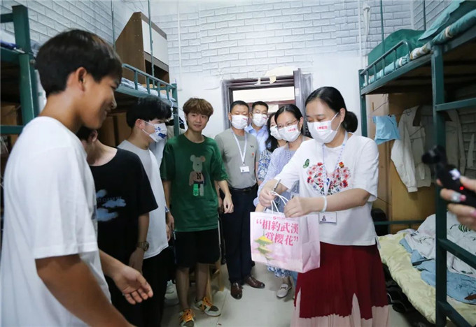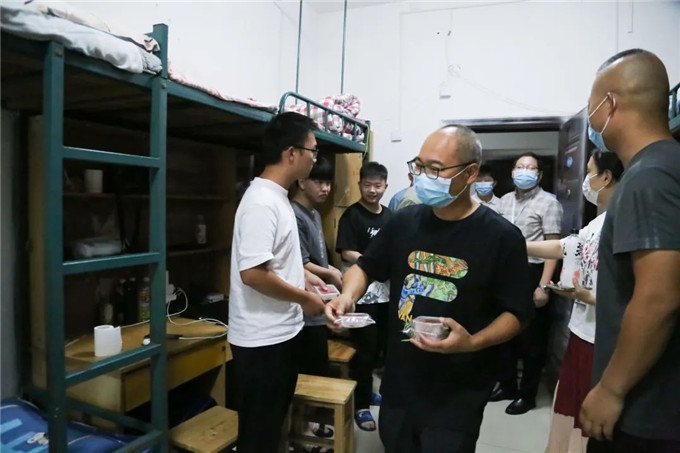 9月10日上午,武信校领导携相关部门工作人员走访校园,深入寝室,慰问学生,送上月饼等节日问候。
