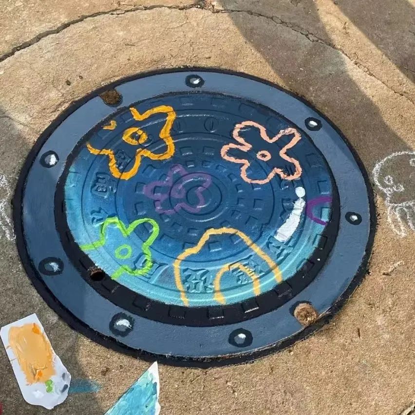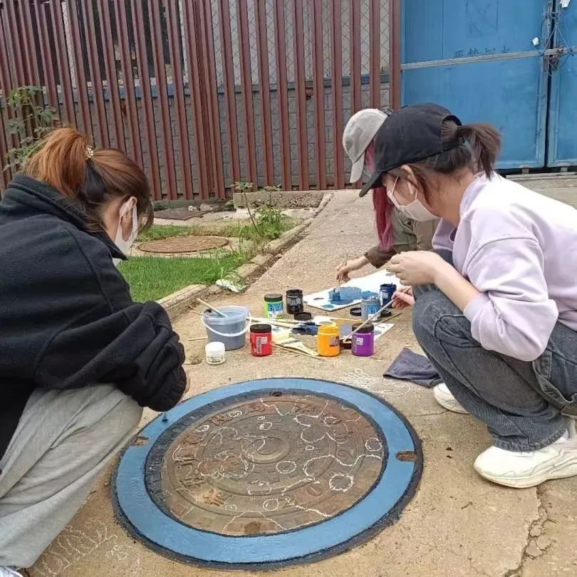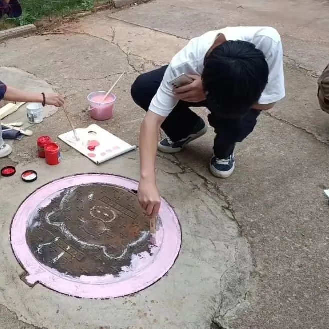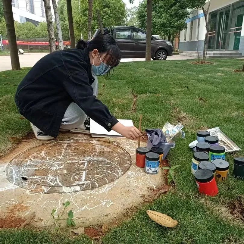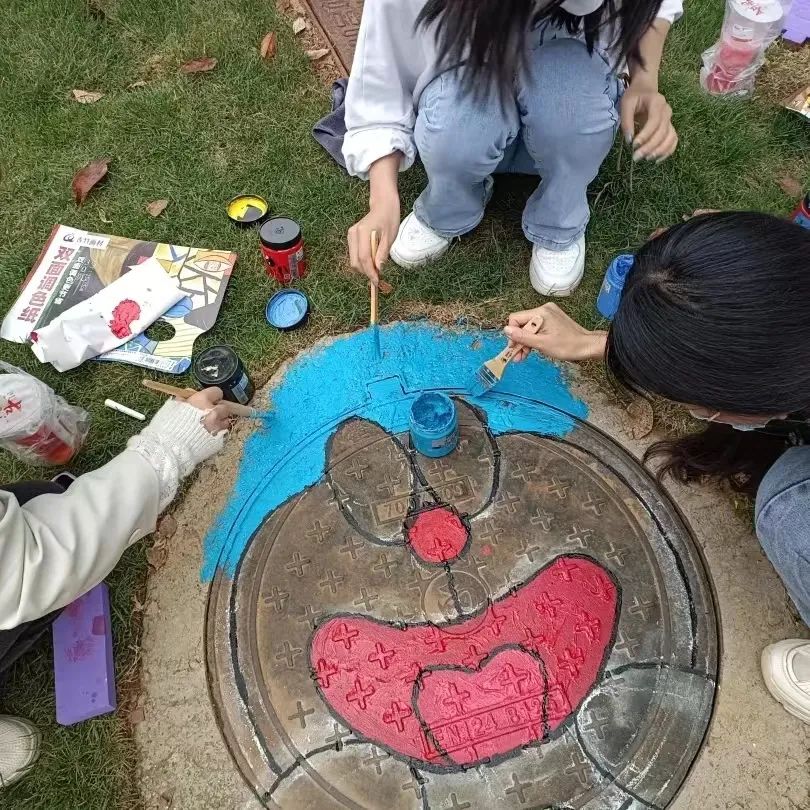 职教周期间,数艺班的同学还积极参与校园美化活动。他们利用自己的专业特长,对学校井盖、文化墙等,进行艺术绘画创作。一个个高颜值的井盖,从同学们手中诞生……