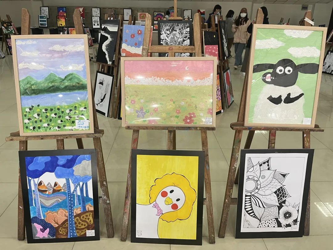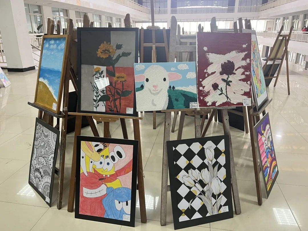 一幅幅线条流畅、构思巧妙的作品,或色彩鲜艳,或黑白搭配,黑白装饰画、色彩装饰画、石英砂肌理画……展示了同学们较为扎实的专业功底、极强的艺术表现力和个性张力。