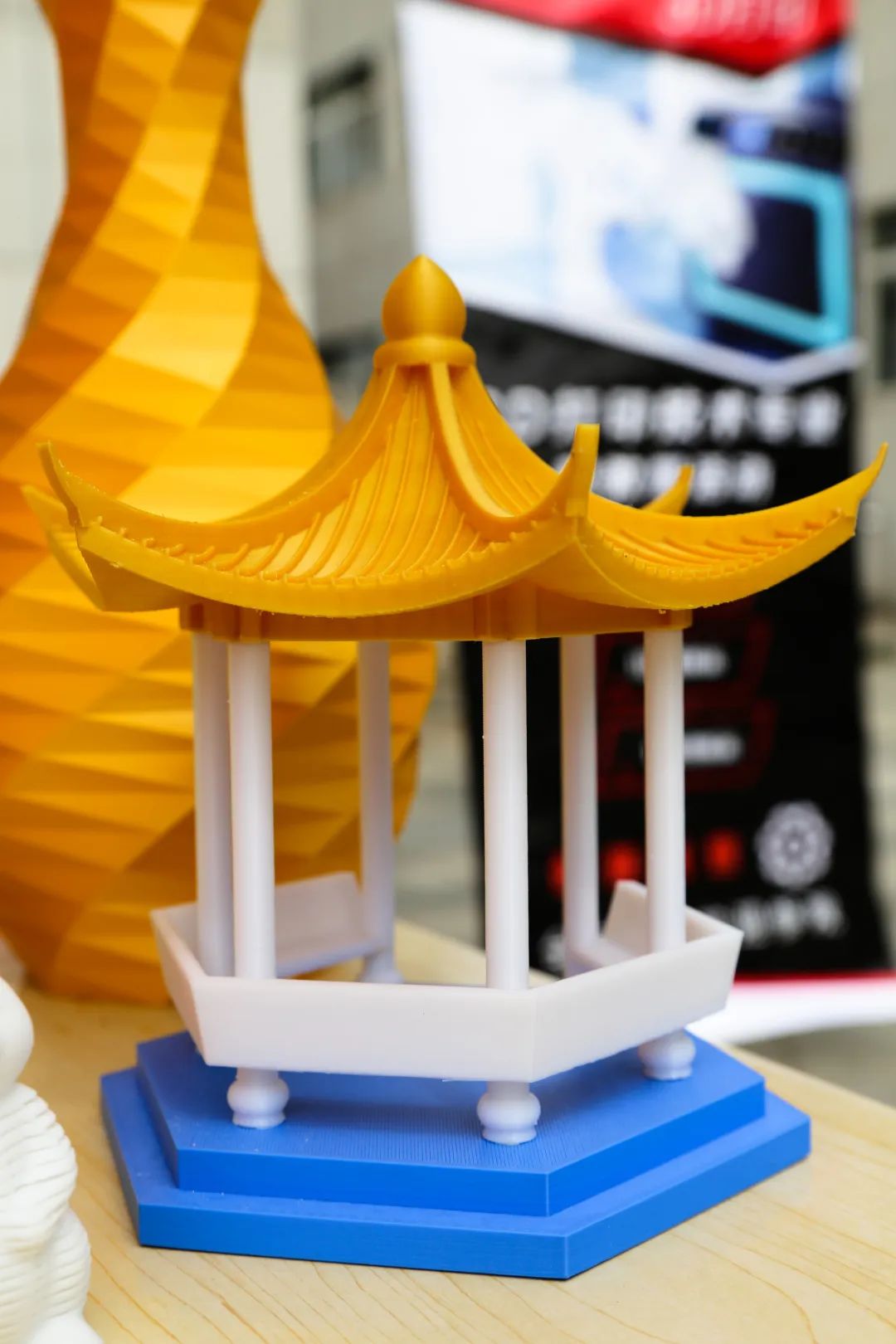 同时,现场近百件3D打印展示作品,从建筑模型、医疗模型、工艺品,到服饰模型和航天模型,栩栩如生色彩艳丽,让围观的同学爱不释手。