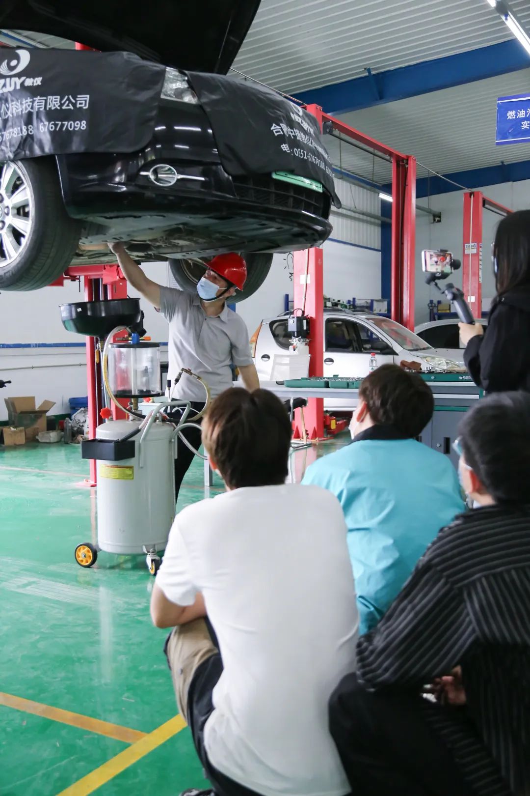 直播现场,讲授老师耐心细致,观摩同学热情高涨,跃跃欲试;直播云上,学生和汽车发烧友们组成的粉丝团积极互动人气十足,在轻松愉快的氛围中了解到汽车保养与维护的要领和技巧,感受新能源汽车基地的完备设施和良好教学实训条件。