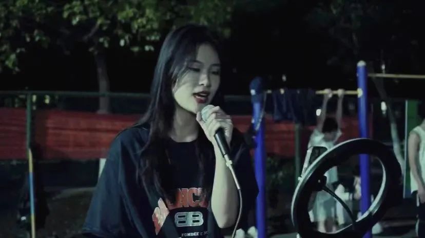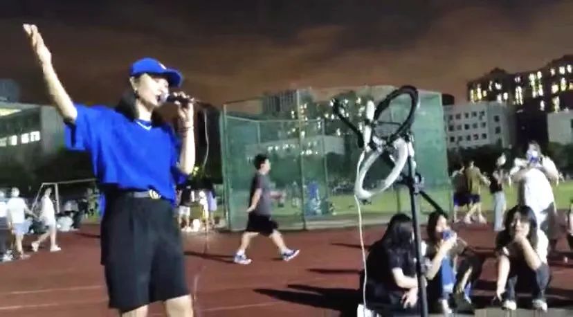 操场音乐会通过抖音平台直播,粉丝们通过平台点歌,同学们现场表演唱歌,线上线下一片欢乐。